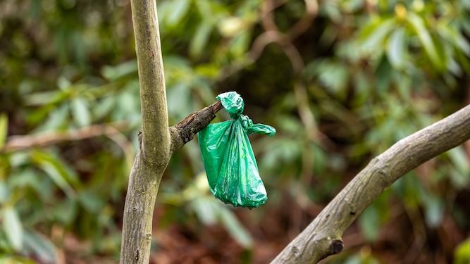 Dog poo bag in hedge reminds woman of ex
