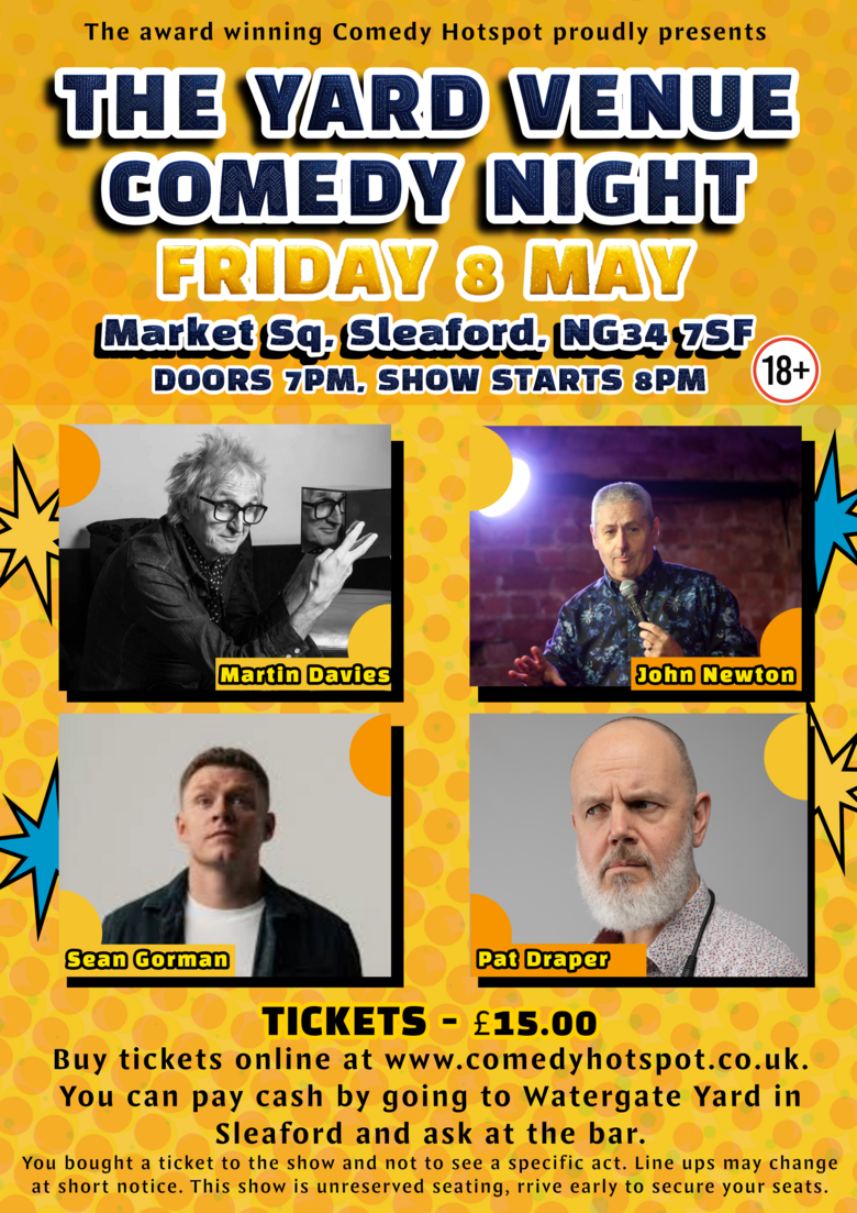 TweetSleaford's longest running comedy club is back at The Yard Venue. You get an award winning Comedy Promoter who excels at putting on live shows, in a great space for live comedy. Nothing is left to chance in the pursuit of the perfect night and it's that dedication which delivers top class shows every single time.