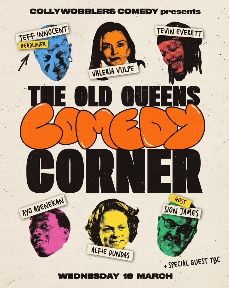 We bring you a fun packed comedy club for you of top comedians bringing you old gold & new gems including the legendary Jeff Innocent- Cockney Philosopher & Comedy Store regular headliner & British Comedian of the Year Winner , Best Live Club Comedian Winner , Comedian's Comedian Winner "It should be made law that every British Citizen must go and see Jeff Innocent. He's that funny." Evening Standard "Jeff Innocent delivers a masterclass in stand up comedy every time he performs” The Times , hotly tipped Moldovan comedian Valeria Vulpe-Winner of Ricky Gervais's Dutch Barn Vodka Spirit of Comedy 2025!, Tevin Everett -American comic & former Navy intelligence specialist now based in London on a mission to make people of Islington laugh, Ayo Adenekan- Joint winner of Best Newcomer at the ISH Edinburgh Comedy Awards 2025, Alfie Dundas Plus special guest TBC providing the lols all hosted by your cheeky charming host & MC Sion James in the friendly cosy buzzy atmosphere of The Old Queens Head Islington.